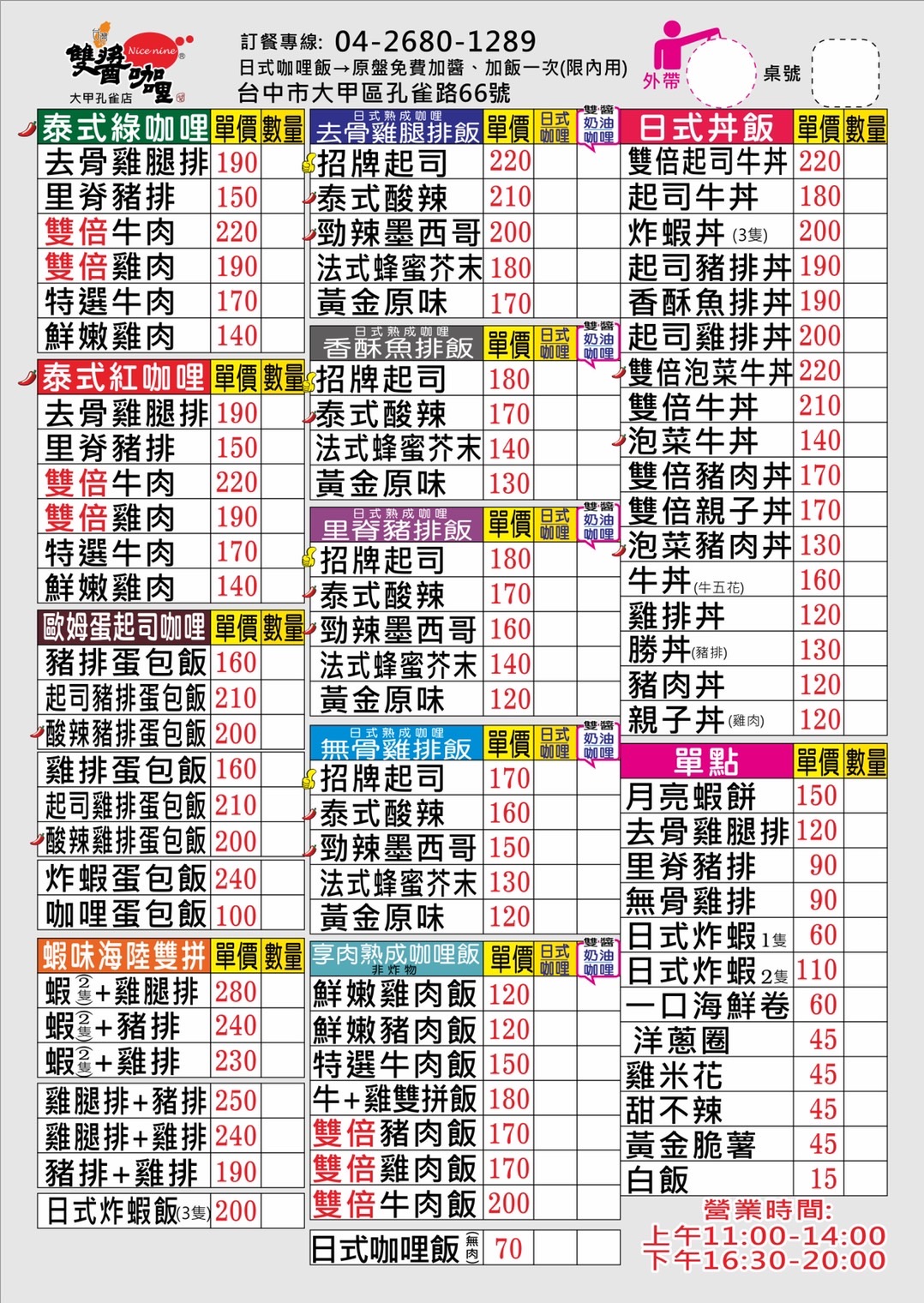 雙醬咖哩(台中大甲店)