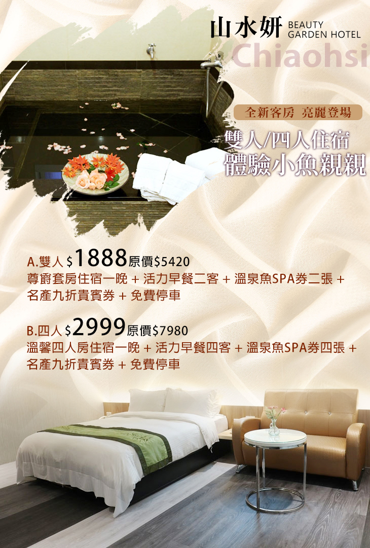 ★ 全新客房亮麗改裝登場!雙人房約10-12坪/四人房約12-15坪,附早餐及溫泉魚,吃飽喝足入住寬敞乾淨客房,讓你度假無負擔!
