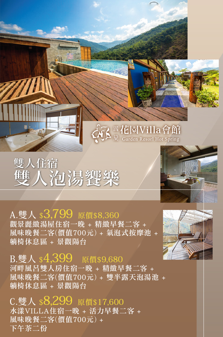 會館佔地4公頃,每間房都有屬於自己的寬敞浴池、SPA 淋浴面板和私人的庭園,室內有 kingsize 雙人床、家庭影音劇院組、鏡面戲水泳池、SPA 沖擊泉、氣泡按摩池及蒸氣室,還不趕緊下單,幫您省去往東南亞跑的機票錢,也讓您驚嘆,原來台灣南部,就有如同從峇里島搬遷過來的高級 VILLA。