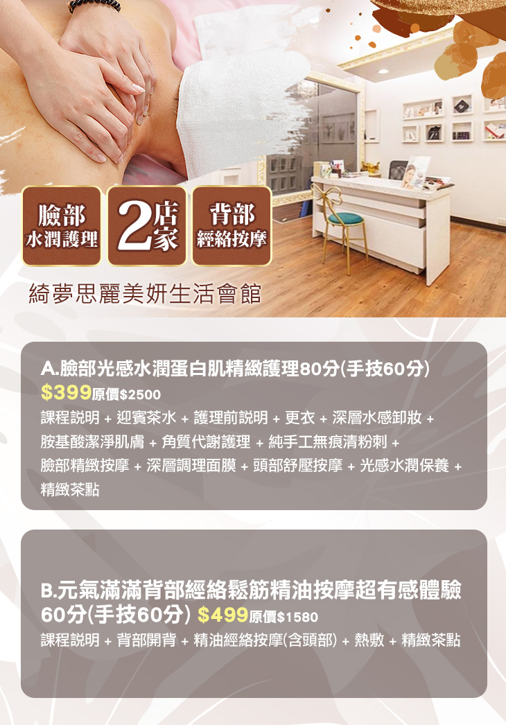 A.臉部光感水潤蛋白肌精緻護理80分(手技60分)