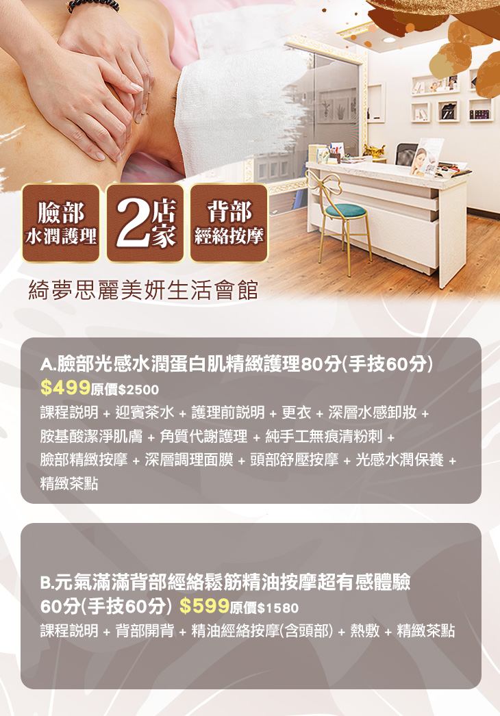 A.臉部光感水潤蛋白肌精緻護理80分(手技60分)
