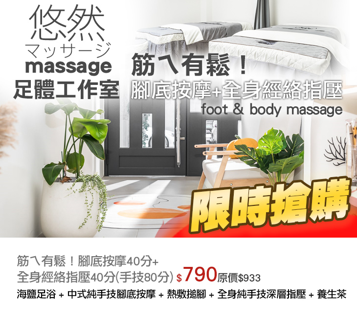 筋ㄟ有鬆!腳底按摩40分+全身經絡指壓40分(手技80分)