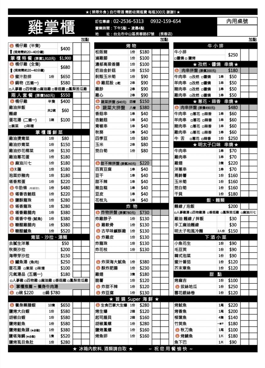 雞掌櫃 MENU(點圖放大)