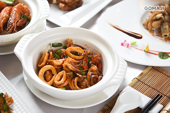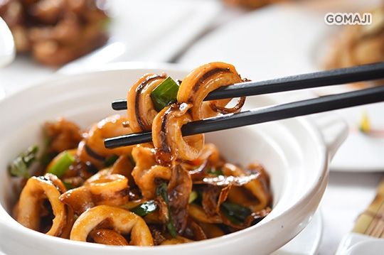 濃鮮香醇的甜鹹醬汁,漂亮收放三杯的精湛口味。厚實的韻底,隨中卷 Q 勁,一圈一圈繞著舌尖打轉,充斥海的自然清甜,又不失山色的豪邁氣息。每一口都讓人回味不絕。