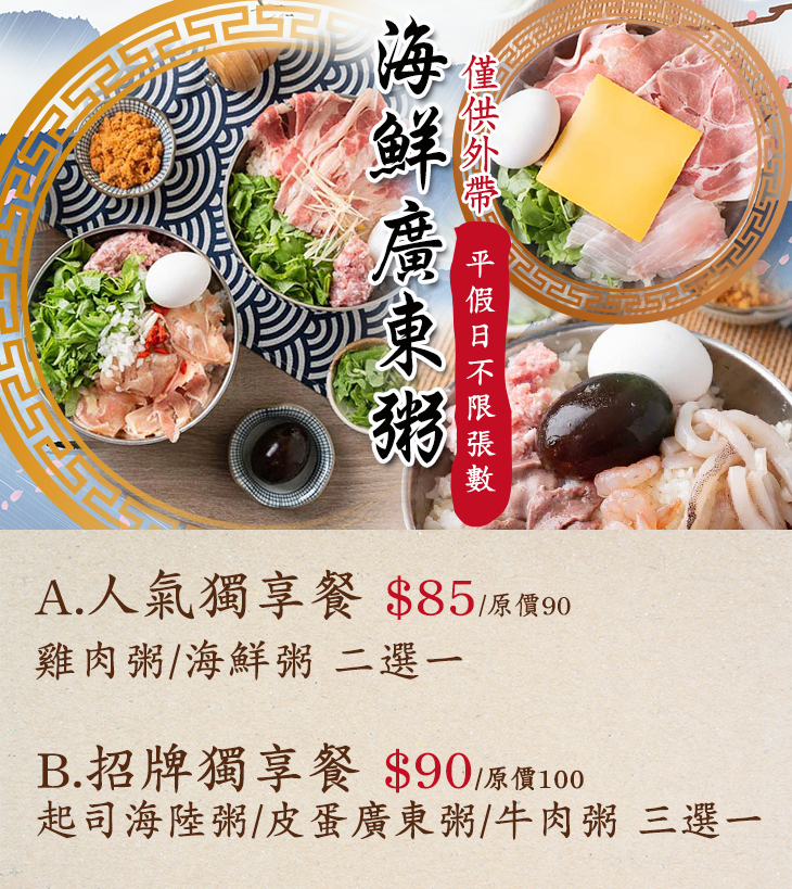 是台味滿滿的廣東粥呀~在經典的口感裡伴有一絲熟悉的溫暖風味,那不僅是源自於老闆對粥品與顧客的熱情,更多的是因一顆陪伴無數人成長的傳統「皮蛋」,其味道特濃,但卻不致刺鼻難聞,反而能起到提味的效果,同時也會把二地的美食精髓注入其中,勾勒出多重般的精采體驗。