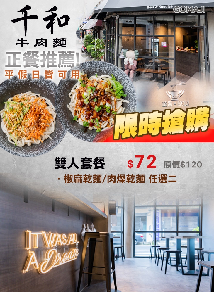 想品嚐一碗美味的牛肉麵,那麼您絕對不能錯過【千和牛肉麵】!老闆堅持使用新鮮蔬果為基底,費時費工、文火慢熬出的獨門湯底,底蘊溫潤、甘醇,一點一滴都療癒人心、驚艷味蕾。除此之外,也推出許多乾拌麵系列品項,讓您以平實的價格就能享受台灣道地的庶民美食,優惠不等人,一起來嚐嚐看吧~保證讓您一試成主顧唷!