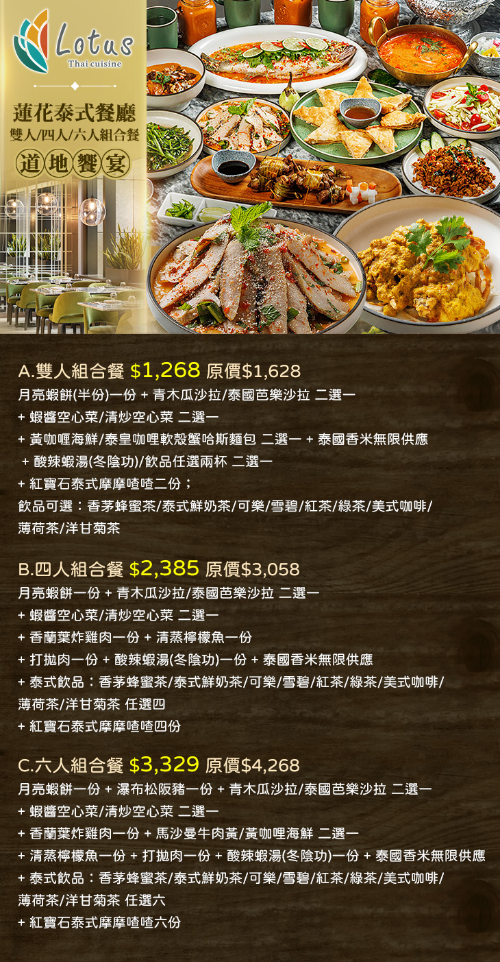【板橋凱撒大飯店】餐飲品牌-Lotus 蓮花泰式餐廳,主打經典、道地的泰式料理,讓您品味正宗的泰式饗宴。