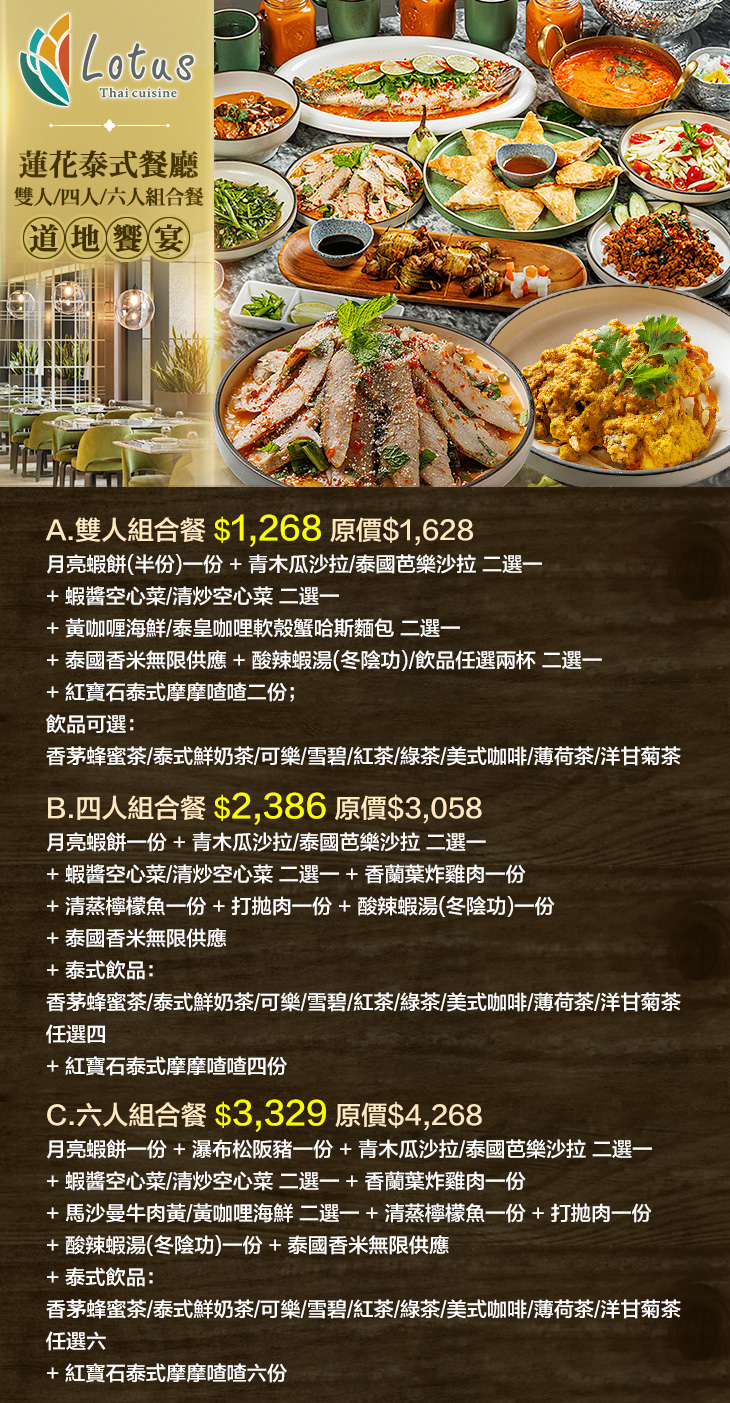 【板橋凱撒大飯店】餐飲品牌-Lotus 蓮花泰式餐廳,主打經典、道地的泰式料理,讓您品味正宗的泰式饗宴。