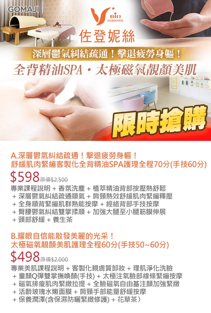 A.深層鬱氣糾結疏通!擊退疲勞身軀!舒緩肌肉緊繃客製化全背精油SPA護理全程70分(手技60分)