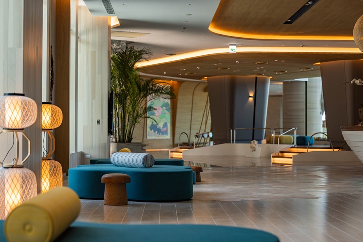 走進飯店,讓我們先到二樓大廳辦理進房手續吧!早晚餐、輕食餐廳也都位在二樓,走在上面就好像在甲板上漫步,多種船帆、鯨魚及海洋的元素隨處可見,讓人彷彿置身於一場別樣的海上假期!