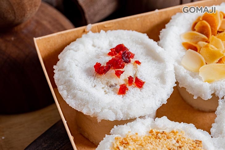 又是一款異國結合的完美作品~以港式飲茶必點的「流沙奶皇包」作為發想源,使用最佳的調味、原料打造出濃醇鹹香的奶黃內餡,並搭配老闆精心製作的狀元糕,裝盒前再灑上鹹蛋黃酥碎片,一口咬下,Q勁與軟綿之間交錯著細碎的顆粒感,鹹蛋奶香隨著爆漿的口感四溢而出,滋味豐富,鹹甜而不濃膩,層層疊起的美味,保證一試難忘!