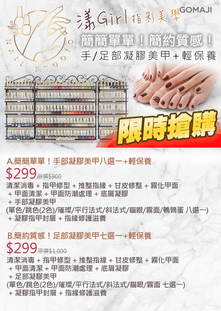 A.簡簡單單!手部凝膠美甲八選一+輕保養