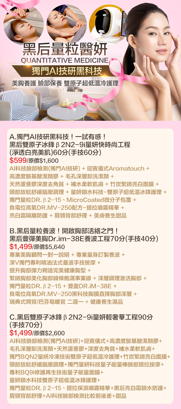 A.獨門AI技研黑科技!一試有感!黑后雙原子冰鋒β2N2-9i量妍快時尚工程(淨透白亮美肌)60分(手技60分)