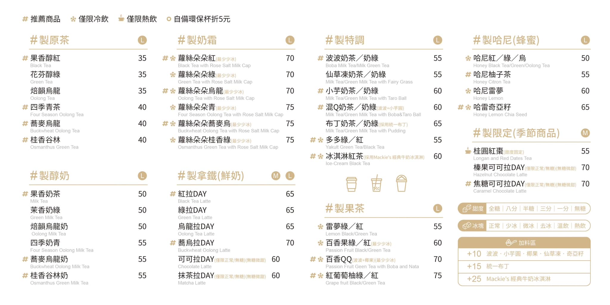 如果覺得紅茶、烏龍茶都太普通,那就絕對要嘗試蘿絲朵朵桂香綠,綠茶加上桂花的香氣,在茶香之餘又多了花的清香,搭配上濃郁的奶霜,絕對是一口接一口,讓人喝完回味無窮。