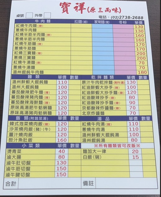 創立於1961年,傳統的老字號--寶祥(原三兩味)原汁牛肉麵,延續其經典製法和理念,繼續傳承橫跨50年以上的國民美味,並用實在的價格與份量,滿足舊雨新知的口腹之慾,好評連連、品質無虞。設有乾淨舒適的用餐環境,提供豐富多樣的餐食選擇,主打的原汁牛肉麵系列,堅持使用純牛骨加上蔬果去熬煮高湯,全程以小火慢燉,無添加化學及人工香料,吃得到原始、純粹的甘味,保證一試成主顧。