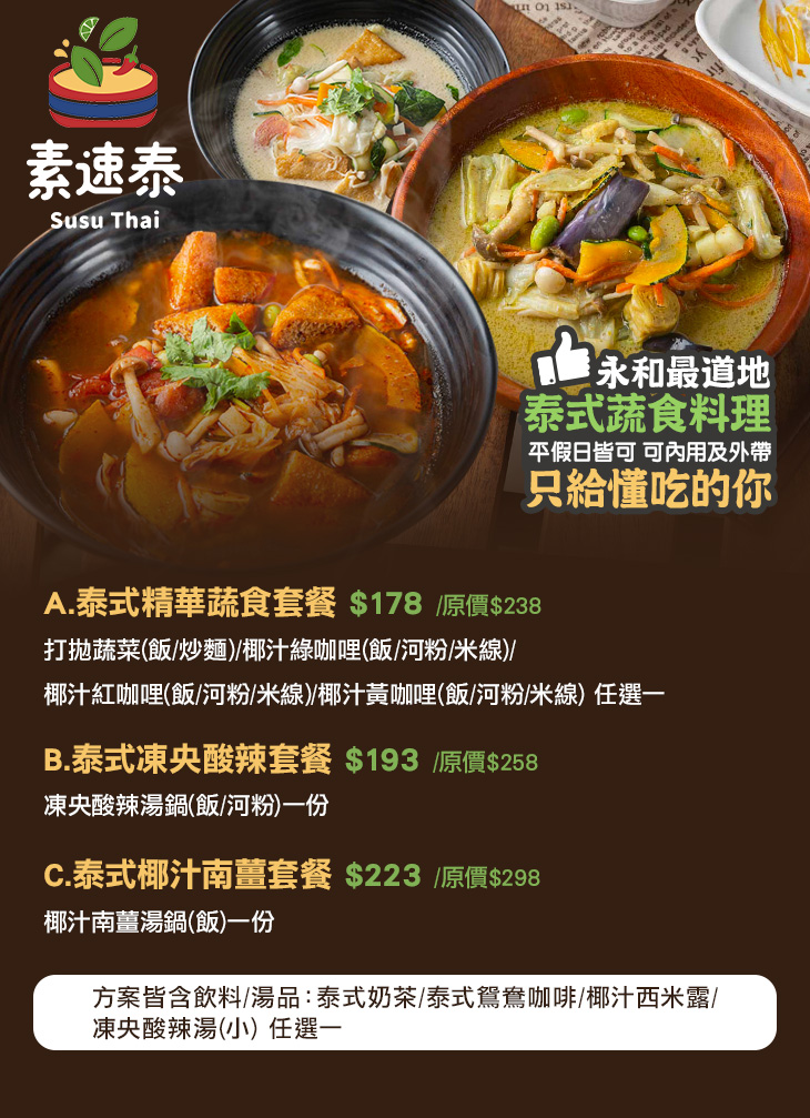 【素速泰Susu Thai泰式蔬食(永和店)】感謝麻吉們熱烈搶購,已全數賣光光。