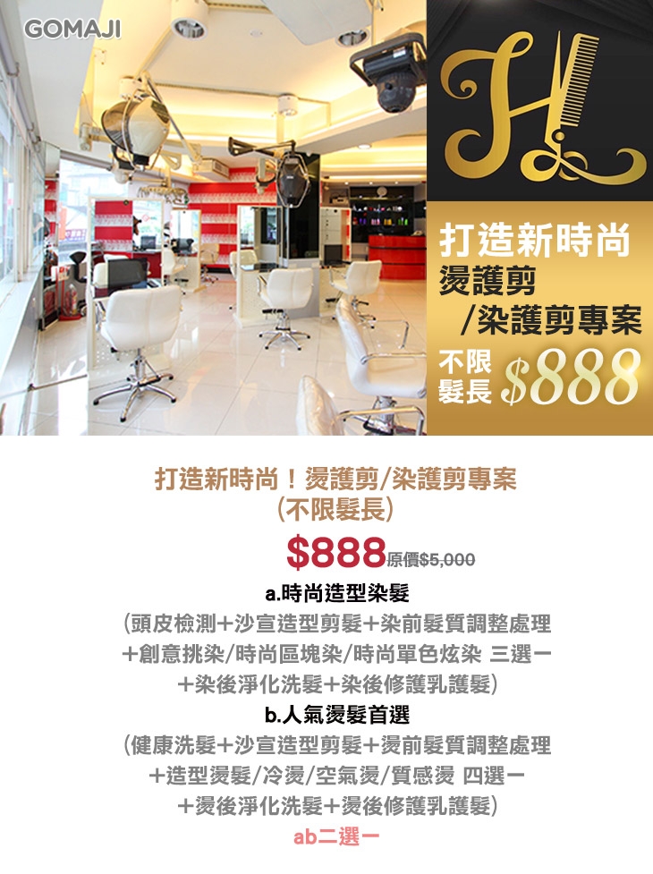 超值方案二選一!無論是燙髮或是染髮,通通交給專業的美髮師就對啦~除此之外,也可同時享有洗剪護的服務,一次滿足所有的需求。選擇『染髮』,改變以往的髮色,展現全新的視覺效果,從光滑柔順的髮絲當中解鎖不一樣的耀眼自信;選擇『燙髮』,藉此擁有仙氣飄飄的迷人魅力,用完美的捲度,使舉手投足之間都能成為目光下的焦點~心動不如馬上行動,立即預約,變美一波吧!