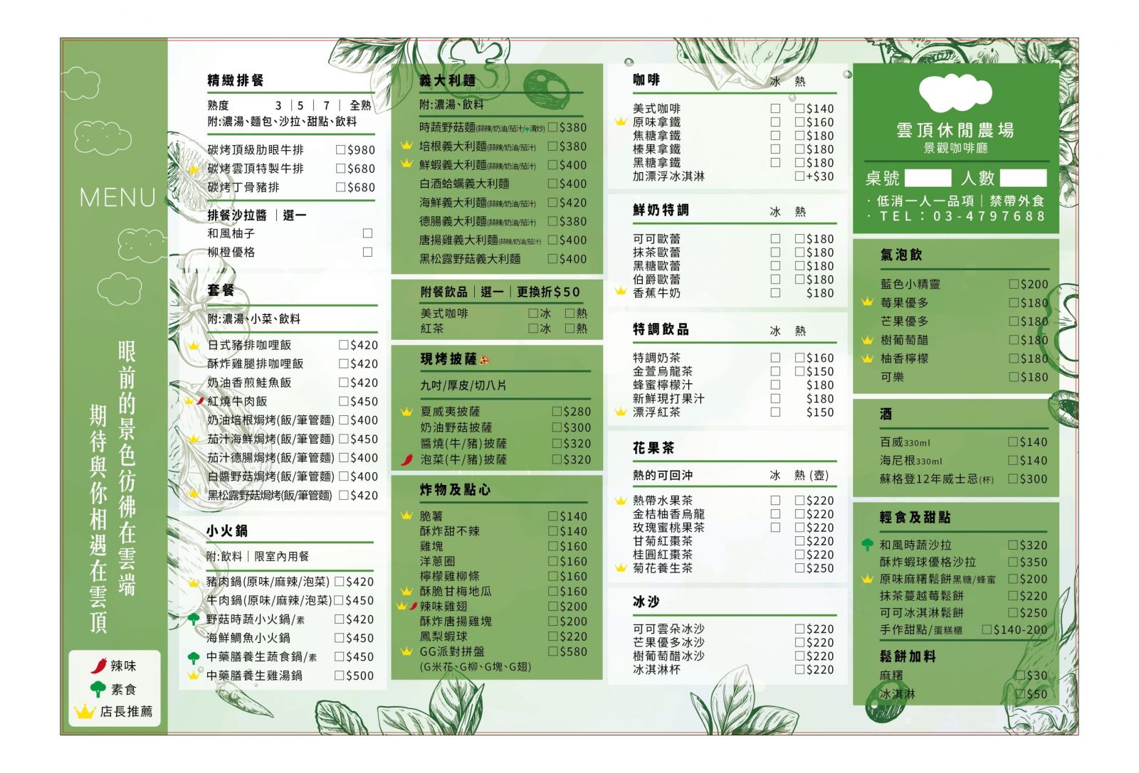 【雲頂休閒農場景觀餐廳】感謝麻吉們熱烈搶購,已全數賣光光。