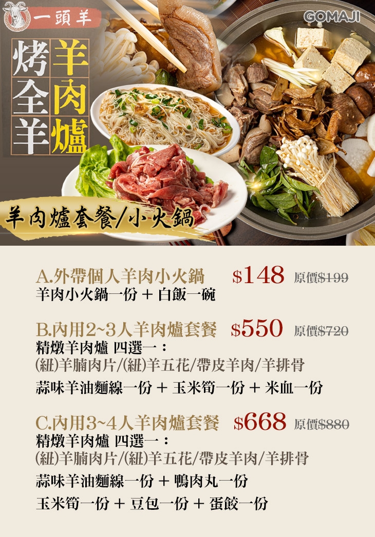 A.外帶個人羊肉小火鍋