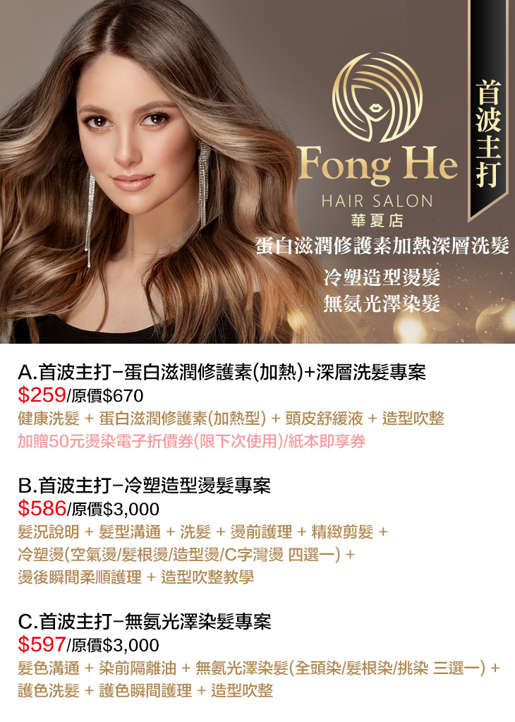 A.首波主打-蛋白滋潤修護素(加熱)+深層洗髮專案