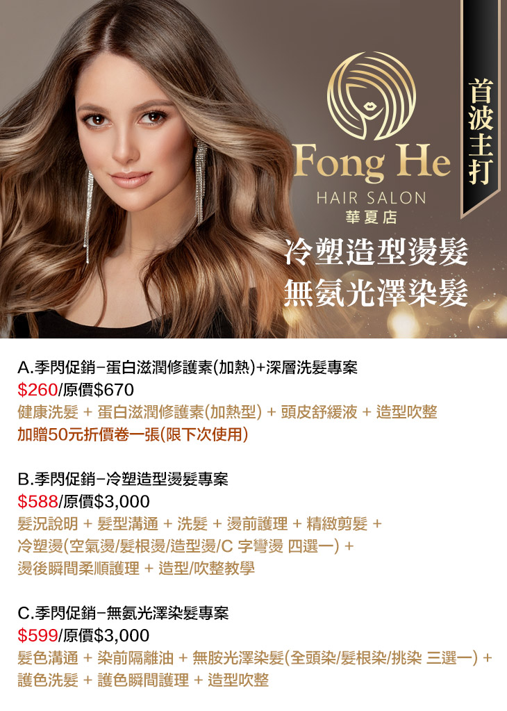 B.季閃促銷-冷塑造型燙髮專案