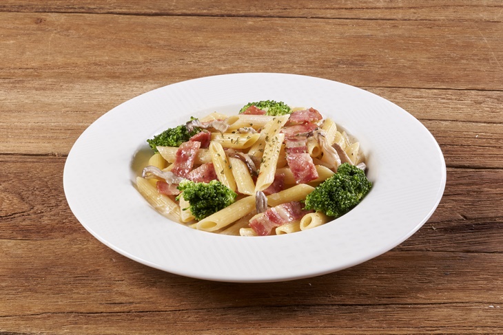 斜管麵一入口就讓人著迷,醬汁濃郁順滑,巴在麵體上的奶油香氣撲鼻而來,濃而不膩。搭配鹹香的培根,每一口都充滿層次感,咀嚼間還帶點微微焦香,口感紮實又帶勁。吃到後來也不會膩口,是那種讓人吃完還想再點一盤的經典組合。喜歡濃郁奶香與鹹香交織風味的你,絕對不能錯過這道!