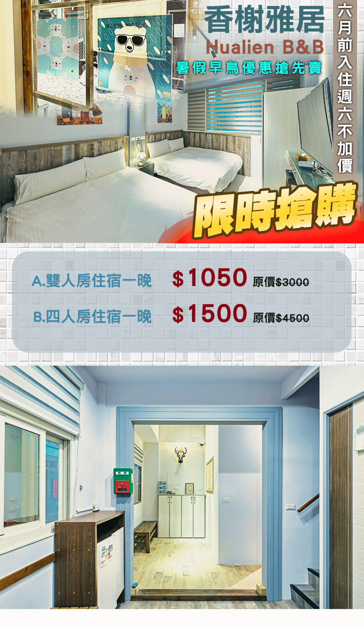 ➯花蓮民宿首選!6/30前入住週六不加價!