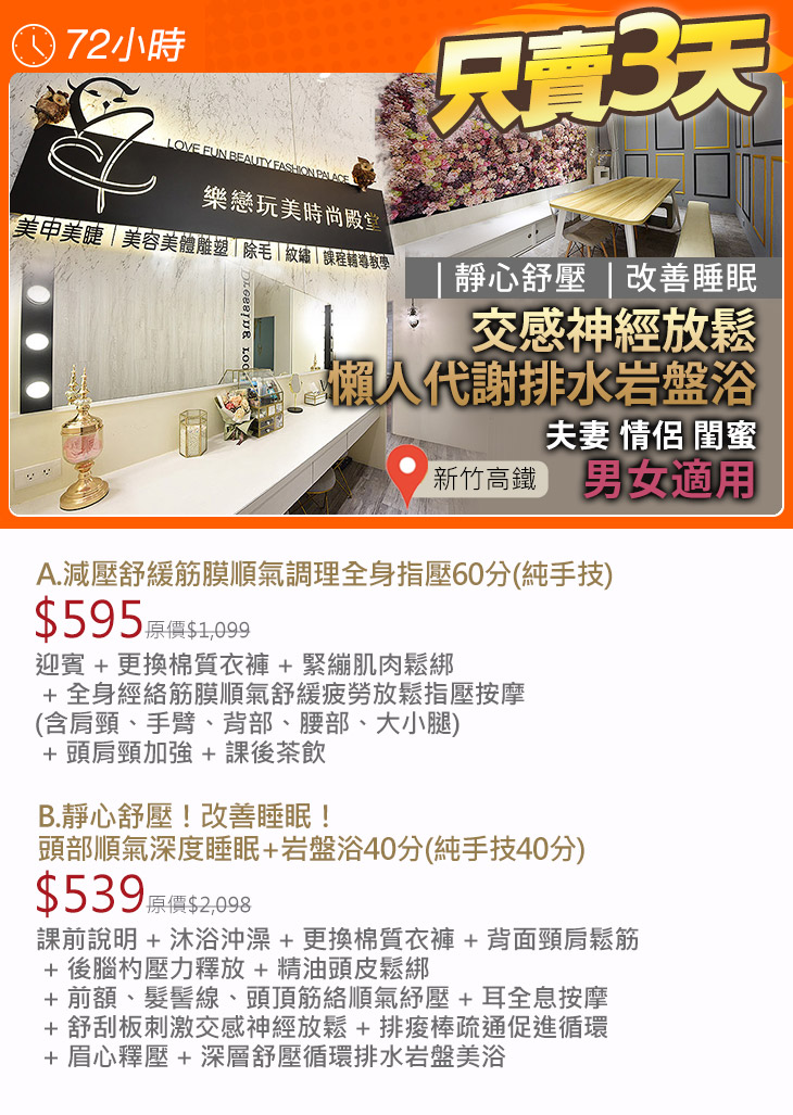 B.靜心舒壓!改善睡眠!頭部順氣深度睡眠+岩盤浴40分(純手技40分)