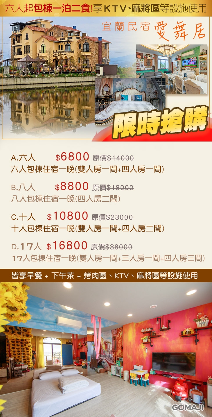 【宜蘭-愛舞居民宿】感謝麻吉們熱烈搶購,已全數賣光光。