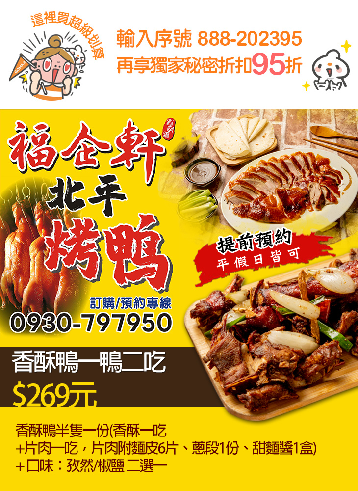 【福企軒北平烤鴨】感謝麻吉們熱烈搶購,已全數賣光光。
