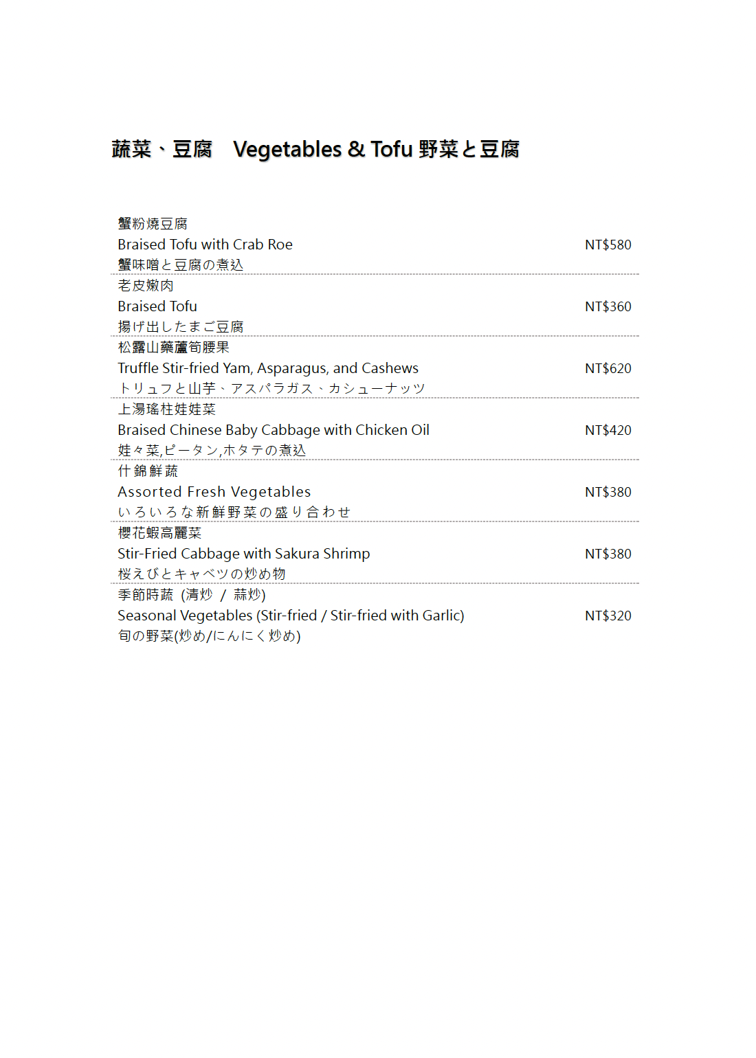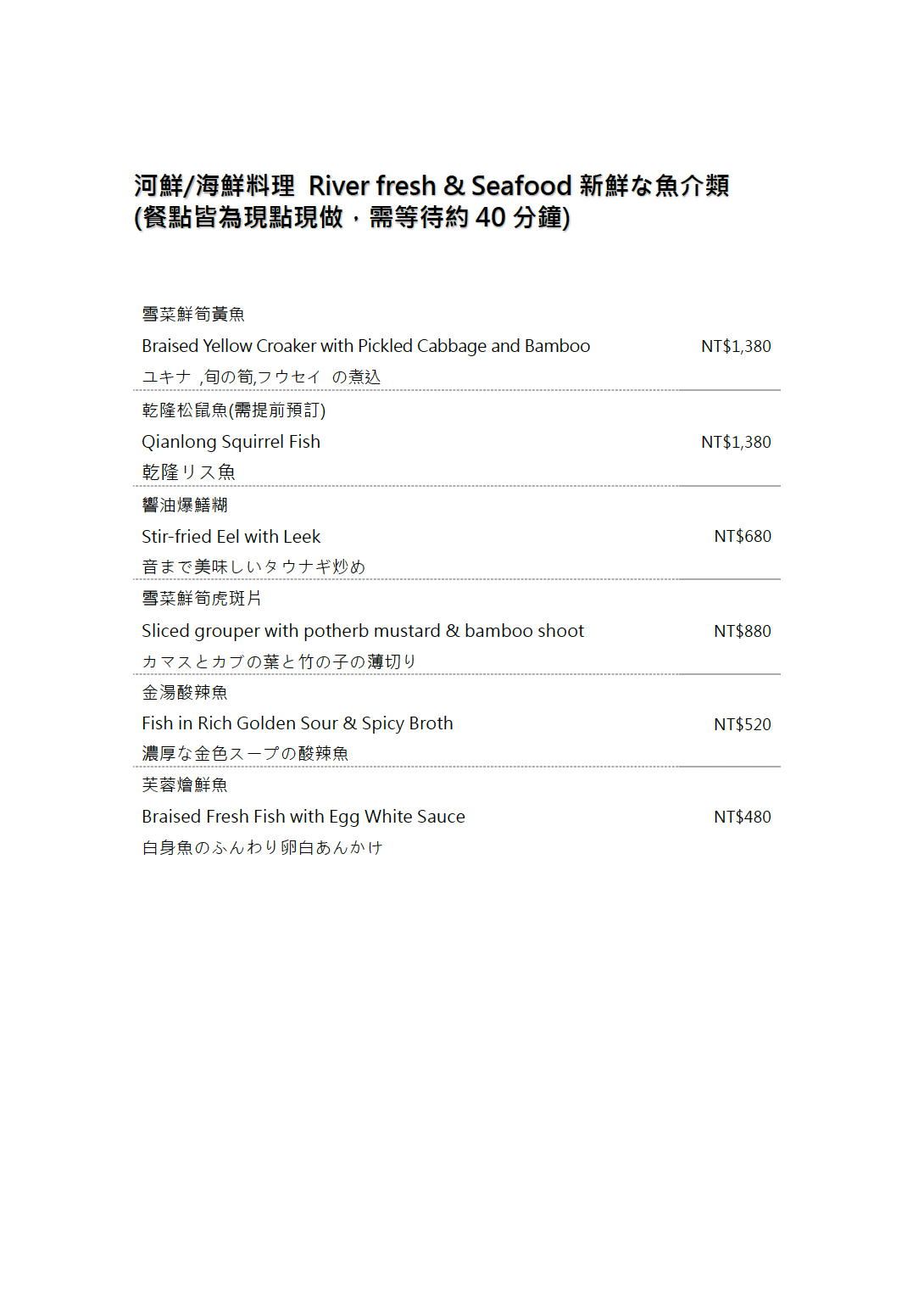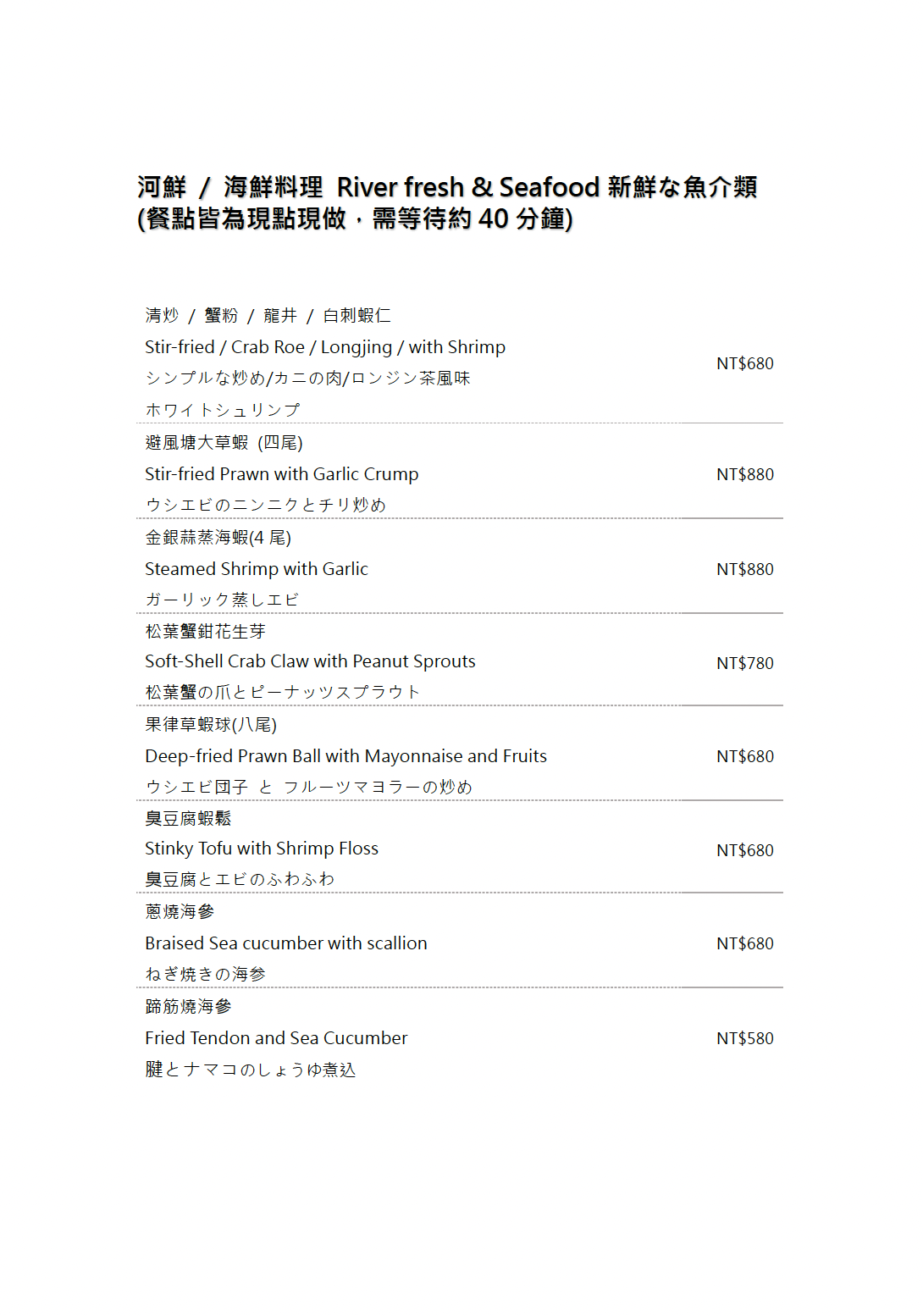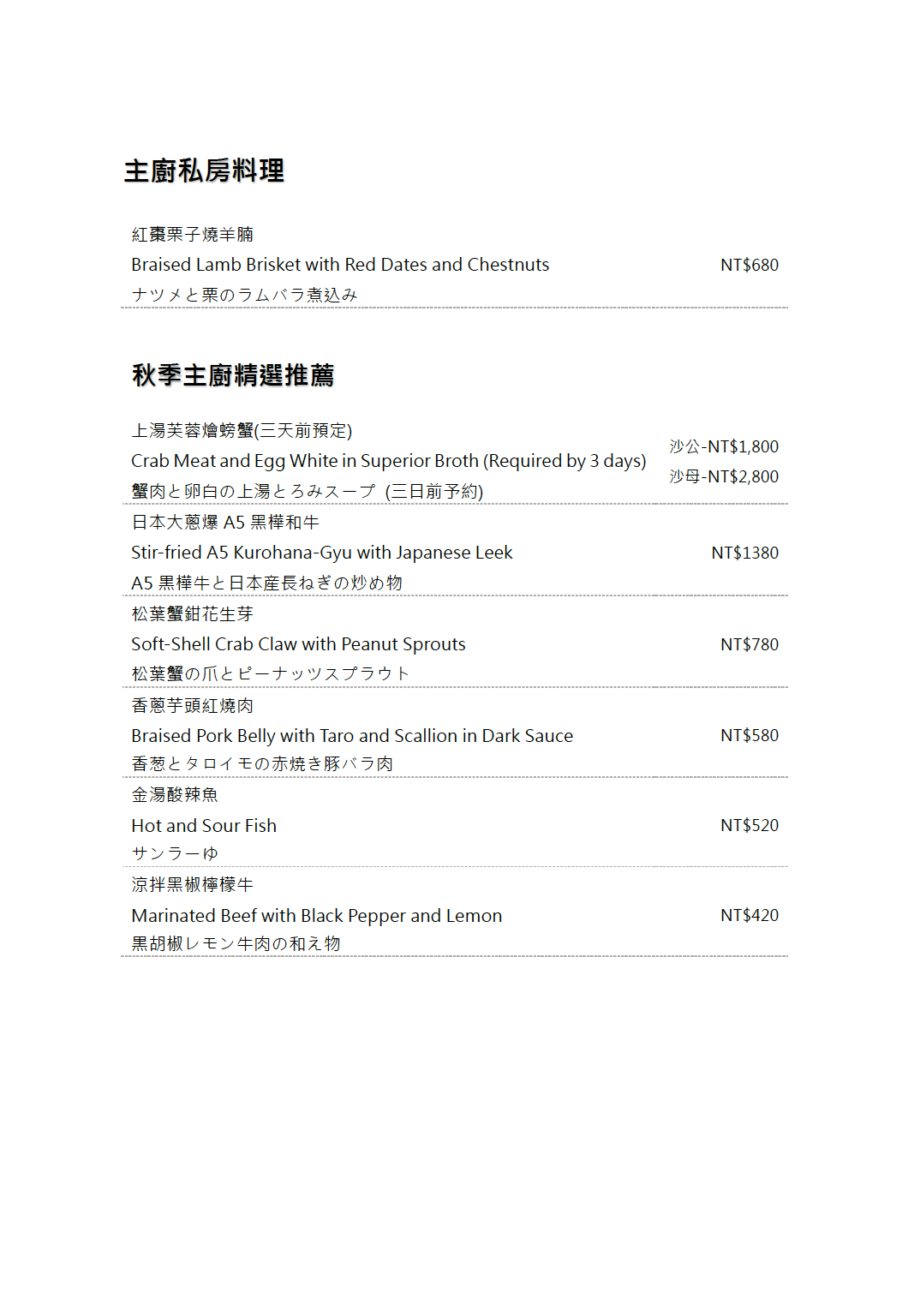 ※菜色內容依季節時令調整,實際菜色、價目依現場提供為主。