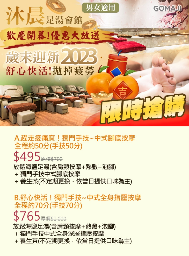 【沐晨足湯會館】感謝麻吉們熱烈搶購,已全數賣光光。