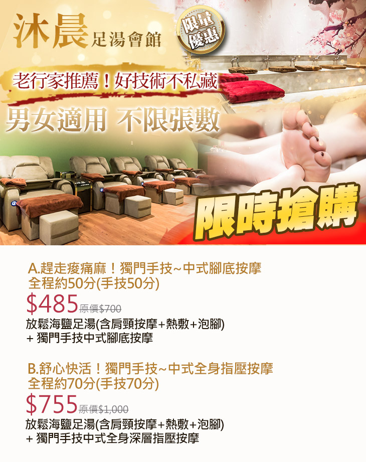 【沐晨足湯會館】感謝麻吉們熱烈搶購,已全數賣光光。