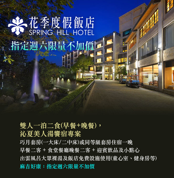 炎炎夏日,想出去玩又怕天氣太悶熱?來【高雄花季度假飯店】泡冷泉、消消暑再適合不過啦!漫步在位於高雄市田寮區的【高雄花季度假飯店】,在園內的每個角落都能夠欣賞到不同花季的迷人景緻;有初春時的百花綻放、盛夏時處處可見的清秀梔子花,還有進入秋、冬時,步道間飄來的桂花暗香,都讓人不由得聞之欲醉,彷彿能時刻感受到春華秋實輪替的瞬間。想暫時遠離都市塵囂,投入大自然的懷抱嗎?這裡將是您最棒的選擇!