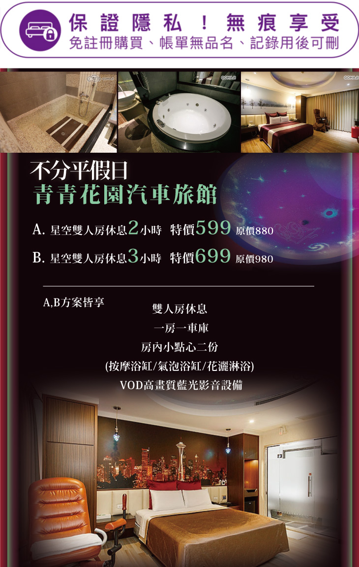 【台北-青青花園汽車旅館】感謝麻吉們熱烈搶購,已全數賣光光。