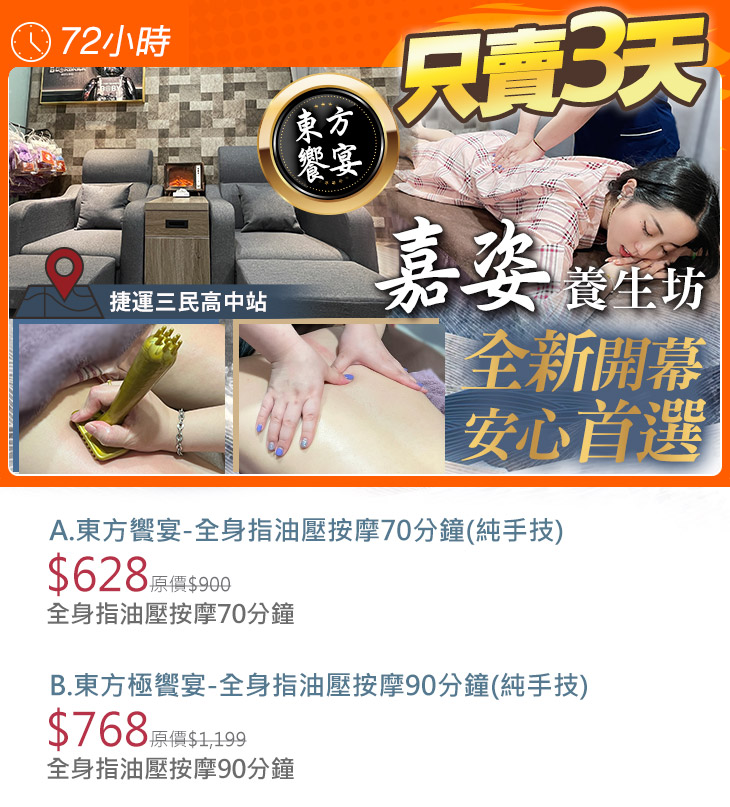 B.東方極饗宴-全身指油壓按摩90分鐘(純手技)