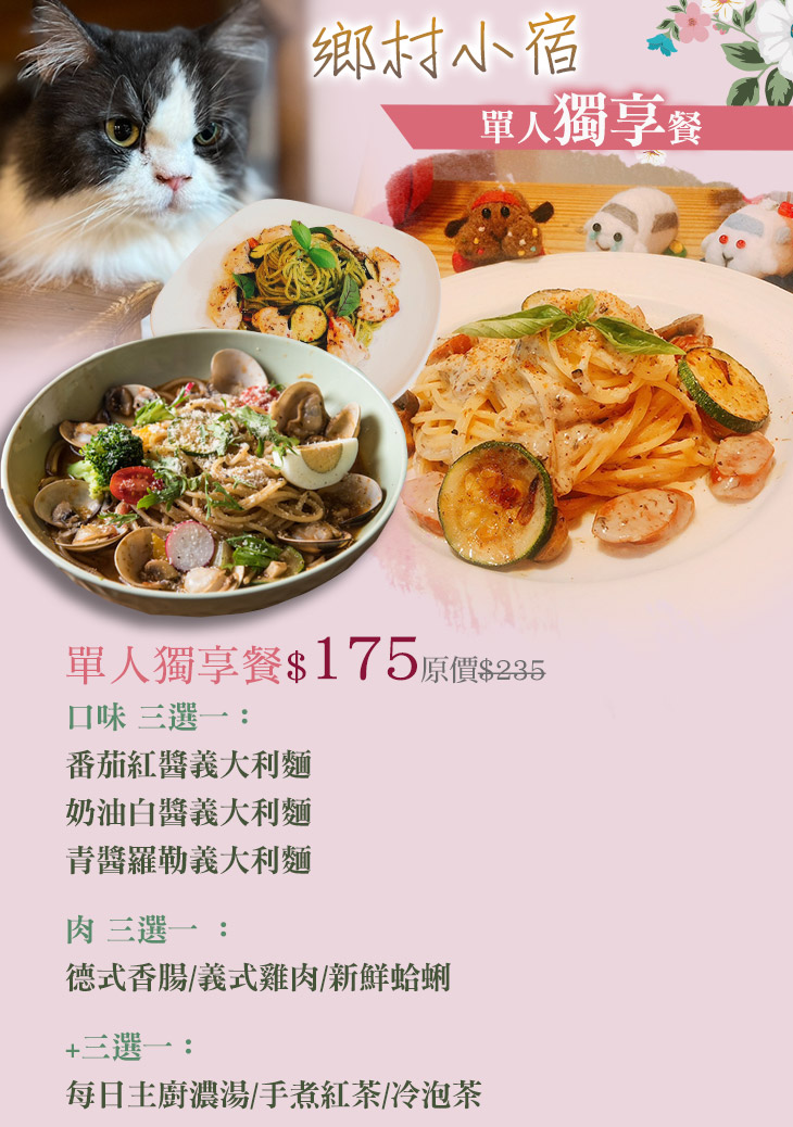 我們是餐廳,不是民宿!堅持選用品質優良的各式新鮮食材,用心烹調每一道料理,致力於讓您品嚐到新鮮美味的餐點,並且提供豐富多樣化的餐點品項,滿足每一位饕客挑剔的味蕾,保證讓您吃得滿意又安心!店內還有許多超萌貓咪會幫忙一起顧店喔,喜歡貓咪的麻吉一定要來朝聖!