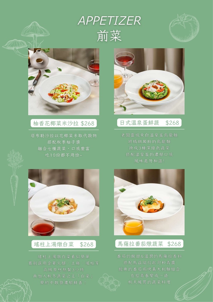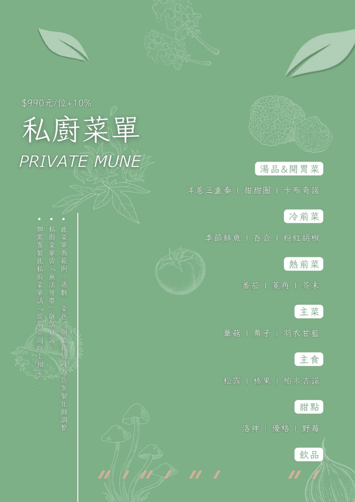 ※菜色內容依季節時令調整,實際菜色、價目依現場提供為主。