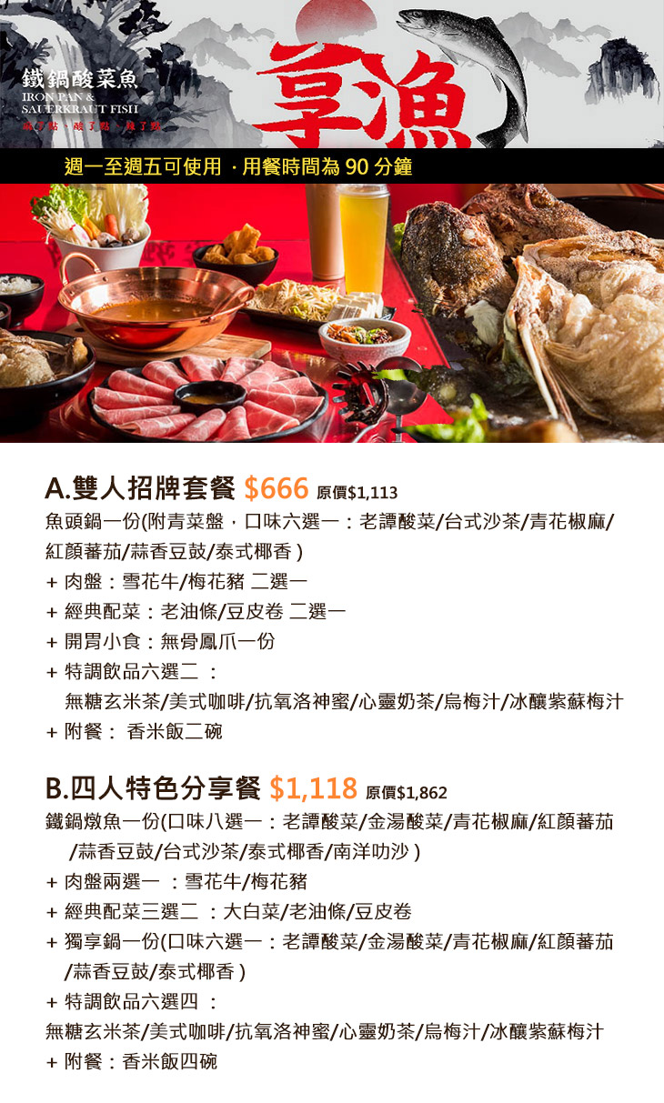 每到用餐時段人潮總是絡繹不絕!嚴選優質食材,搭配費時費工熬煮各種不同口味的湯頭,共譜出風味多元、豐盛誘人的鍋物饗宴,湯濃、肉嫩、料鮮,三個吃鍋的重要元素缺一不可,肉片在鍋中沸騰,陣陣香氣不斷飄散,將食材的色香味精華展現得淋漓盡致~熱愛吃鍋、吃魚的你,快相約親朋好友一同來品嚐這難忘的好滋味!