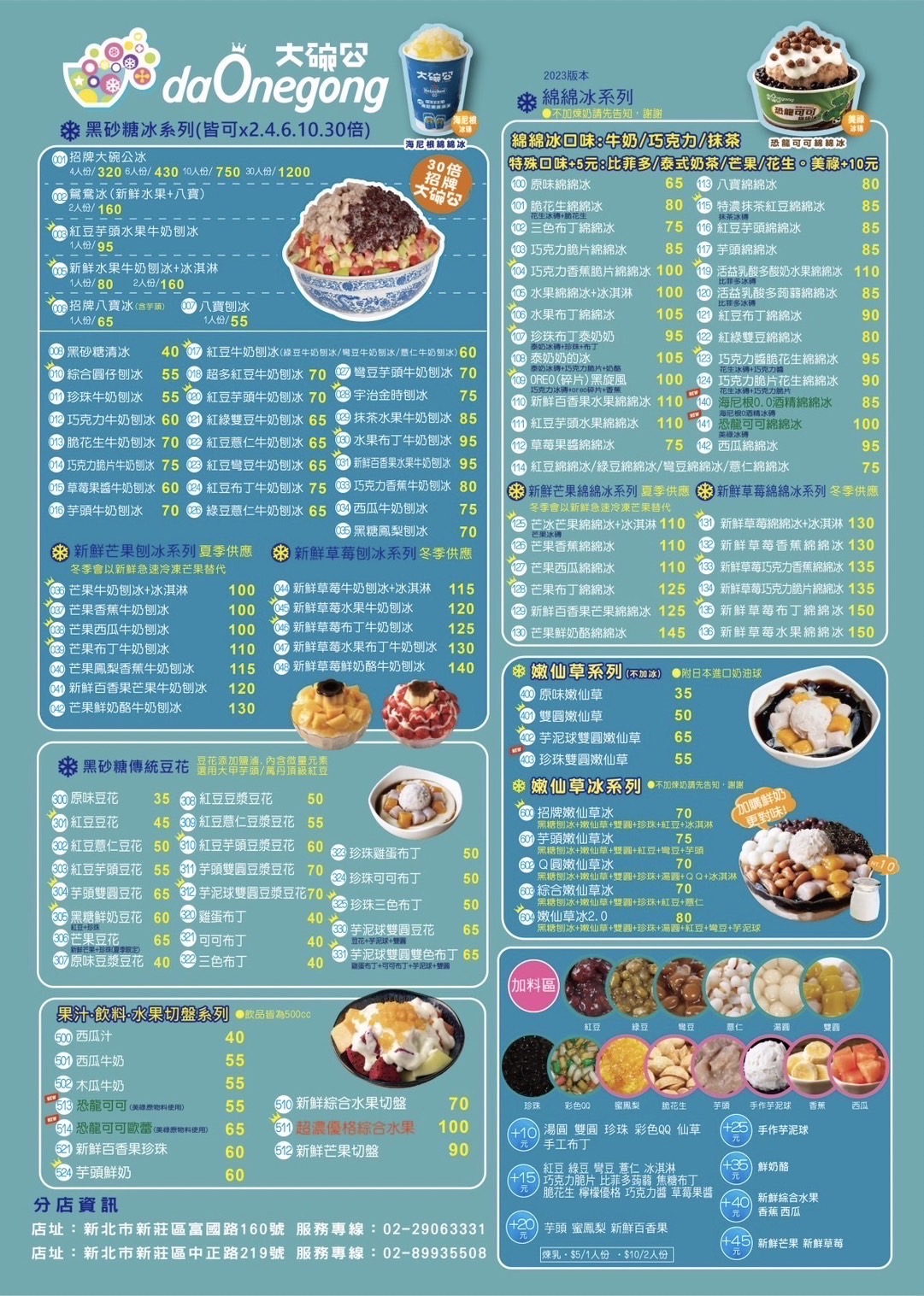 有鑑於傳統小碗的剉冰不能滿足一次想海吃暢飲的消費者,大碗公推出了大碗的甜品,讓消費者可以吃個過癮,也能一同分享。大碗公堅持採用新鮮香甜的水果、遵循古法熬煮的黑糖漿水、使用符合衛生標準的冰磚以及澎湃的份量四大原則,至今才能享譽國內外。這裡要推薦給大家這間裝潢以白色為基調的大碗公冰甜品(新莊中正店),在這明亮乾淨的環境吃上美味豐富的甜品,是最幸福的享受了~