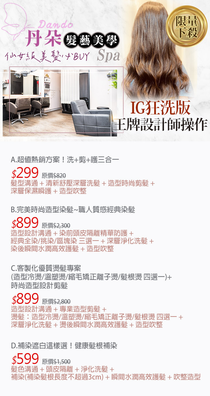 【丹朵髮藝美學Spa】感謝麻吉們熱烈搶購,已全數賣光光。