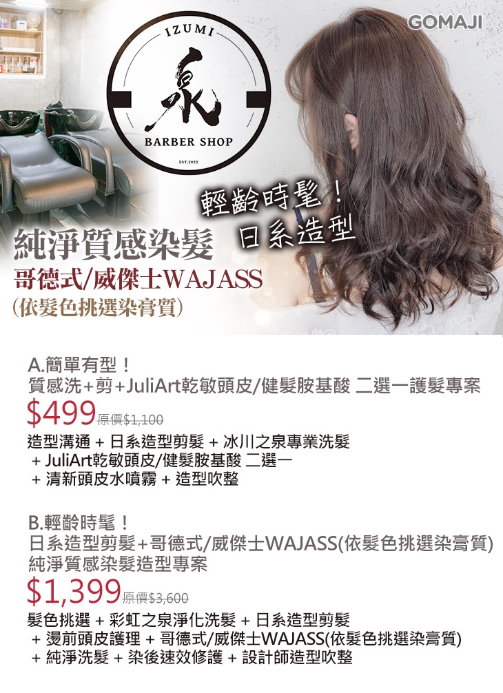 B.輕齡時髦!日系造型剪髮+哥德式/威傑士WAJASS(依髮色挑選染膏質)純淨質感染髮造型專案
