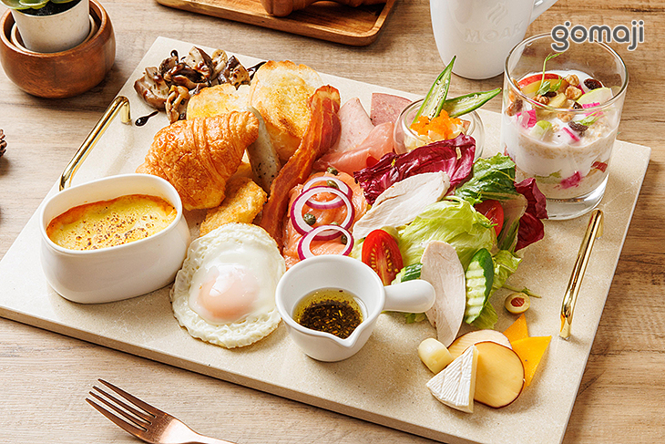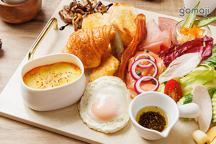 嚴選在地新鮮食材、秉持純粹的烹飪手法,以超高CP值供應浮誇系早餐盤!包括「野莓燕麥糊、歐式起司與冷肉、煙燻鮭魚、綜合生菜與冷拌野菇、洋芋沙拉、煎或炒蛋、培根香腸襯法國麵包、南法薯泥豬肉派、新鮮水果」輕鬆享受豐富餐點!