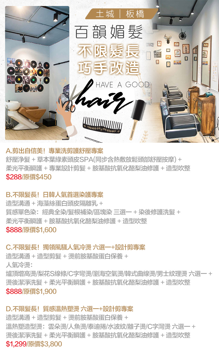 D.不限髮長!質感溫熱塑燙 六選一+設計剪專案