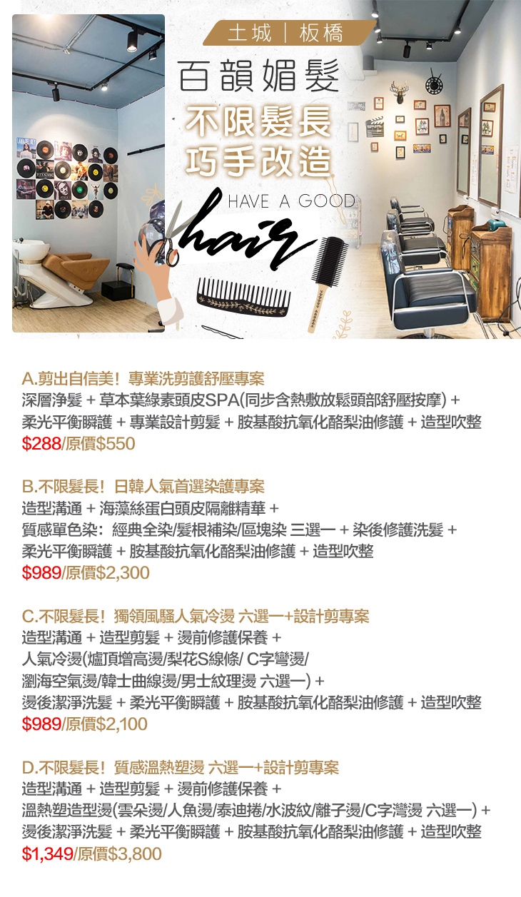 D.不限髮長!質感溫熱塑燙 六選一+設計剪專案