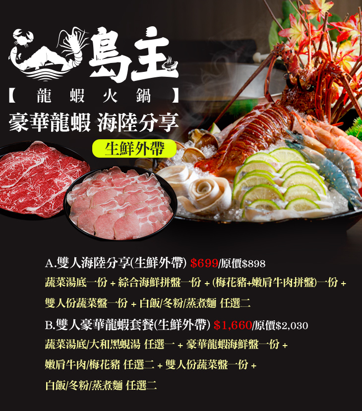 B.雙人豪華龍蝦套餐(生鮮外帶)