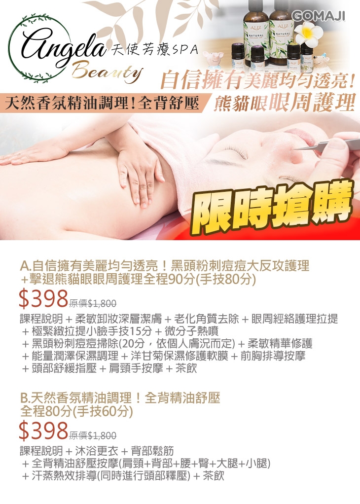 【Angela Beauty 天使芳療SPA】感謝麻吉們熱烈搶購,已全數賣光光。
