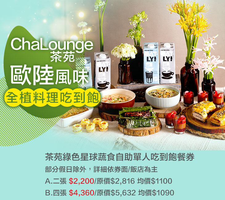 週六及週日午餐或週五及週六晚餐綠色星球蔬食自助單人吃到飽餐券