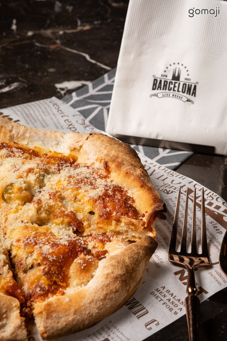 熱騰騰、剛出爐的披薩散發著陣陣麵粉起司香,店家用料實在,上層鋪了厚厚的一層起司跟乳酪,一口咬下拉絲的口感實在是過癮極了!餅皮外層微脆,內裡鬆軟好咬,佐入番茄吃起來完全不怕膩,整體搭配和諧,好吃到一塊接一塊停不下口!