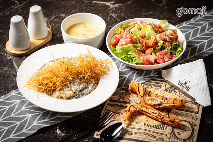 嚴選多種鮮美食材,和飽滿米飯以及松露一同入鍋製成燉飯,在烹飪的時候松露濃郁特殊的氣味完美呈現,一上桌香氣四溢,讓人迫不及待想要嚐一口!入口奶香濃郁,松露的鮮味在舌尖久久迴盪,每一口都入味十足、鹹香剛好,是一道高級又水準的料理!